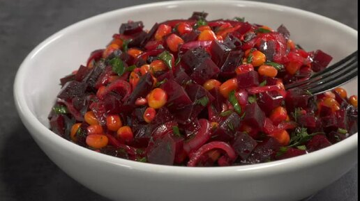 Вкусный, доступный салат без майонеза, из свеклы с кукурузой