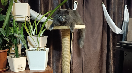 Купили котам новую когтеточку. Обживают, как умеют 😁