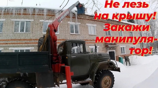 Работа на ЗИЛ-131 с кму unic и монтажной люлькой. Сбиваем с крыши намерзший лëд.