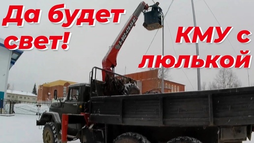 Зацепил корзину для КМУ к своему манипулятору ЗИЛ-131 и в работу. Делаем освещение улиц