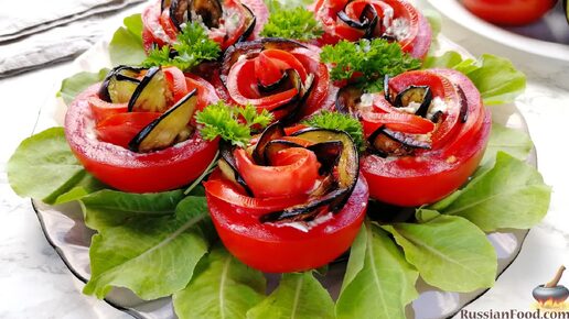 "Розы" на закуску. Помидоры с баклажанами и сыром