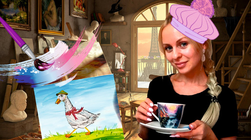 РИСУЕМ ЛЕТНЕГО ГУСЯ В ПАНАМКЕ КРАСКАМИ