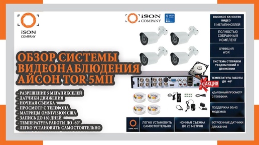 ОБЗОР СИСТЕМЫ ВИДЕОНАБЛЮДЕНИЯ 5 МЕГАПИКСЕЛЕЙ ISON TOR