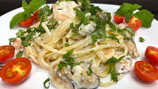 Паста с креветками и мидиями в сливочно-чесночном соусе. Рецепты от Натали. Вкусно и быстро и просто
