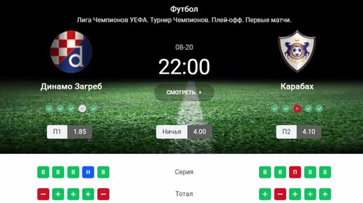 20 августа 2024. Динамо Загреб - Карабах прогноз на матч Лига Чемпионов УЕФА. Турнир Чемпионов