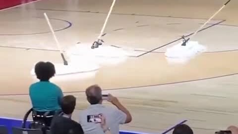 Швабры-роботы протирают покрытие в перерыве баскетбольного матча. А что дальше, роботы-черлидерши?