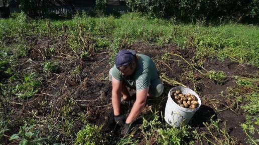 50 литров картошки с 10 кустов с невспаханной и неудобренной земли Показываю как я копаю картошку