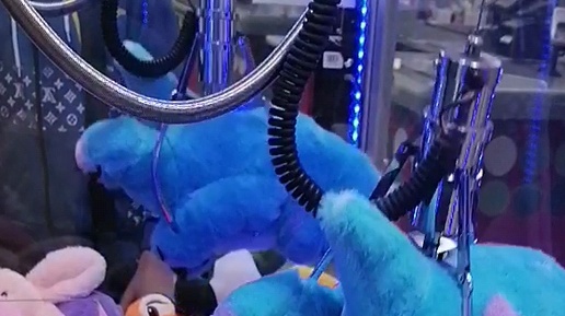 Огромный монстр Салли из Корпорации монстров в аппарате хватайка.