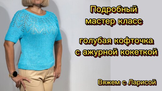 Подробный мастер класс по вязанию Летней голубой кофточки с ажурной кокеткой!
