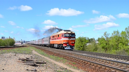 ТЭП70-0293 в старом окрасе с поездом Санкт-Петербург-Самара в Иванове.