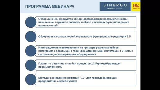 Вебинар "Линейка продуктов 1С:Горнодобывающая промышленность – новые функциональные возможности и планы по развитию"