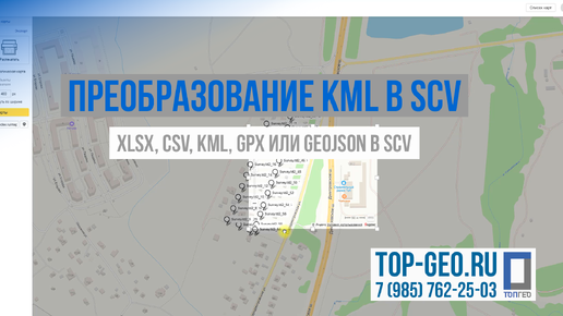 Преобразование KML в SCV, XLSX, CSV, KML, GPX или GeoJSON