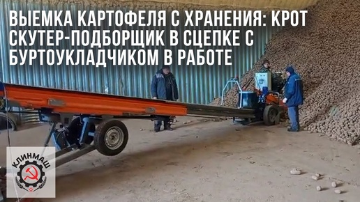 Выемка картофеля с хранения: Крот скутер-подборщик в сцепке с Буртоукладчиком в работе