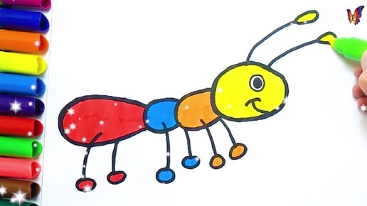 Как нарисовать веселого муравьишку. Простые уроки рисования для ребенка. Учимся цветам - называем и раскрашиваем.