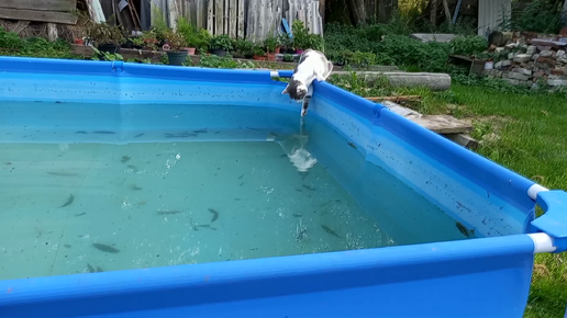Тишка пьёт из бассейна...