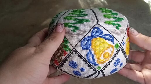 Вышивка и сборка новогоднего объёмного шара