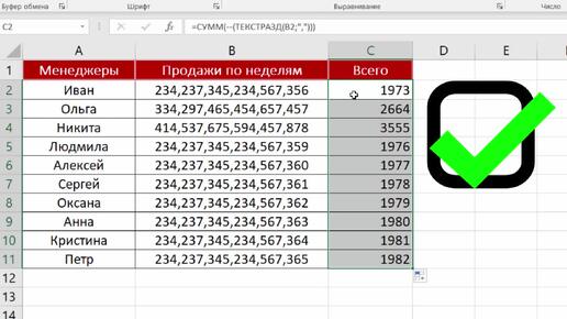 Суммирование в Excel всех значений в ячейке!