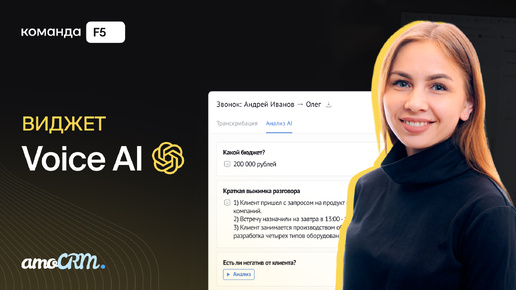 Речевая аналитика звонков в amoCRM через ChatGPT — виджет Voice AI