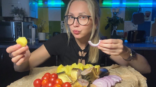 Мукбанг/Жирная скумбрия/Брызнуло прямо на очки ...#едаялюблютебя #рецепты #продвижение #контент #мукбанг #обжор #еданакамеру