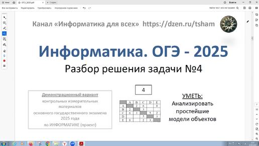 Информатика. ОГЭ - 2025. Задача 4. Между населёнными пунктами A, B, C, D, E построены дороги, протяжённость которых приведена в таблице.