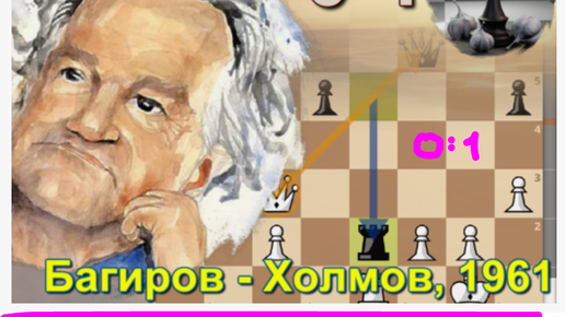Ратмир Холмов великолепно выбивает прыть из Владимира багирова своими черными как смоль фигурами в Баку, 1961, СССР. Защита Шпильмана, 0-1