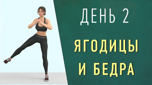 День 2: БЕДРА + ЯГОДИЦЫ🔷 Низкоударная тренировка для похудения и тонуса мышц (есть приседания, без выпадов, без гантелей)