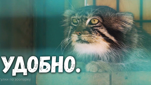 Манул Чип удобно устроился на полочке. Барнаульский зоопарк