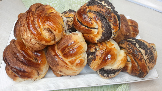 Сдобные булочки! Авторская формовка! Вкуснейшее волокнистое тесто! Булочки с маком/ булочки с корицей