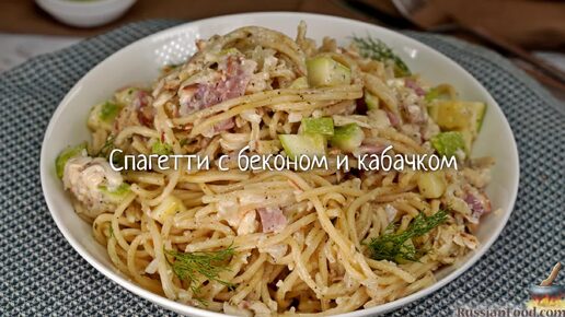 Аппетитный вкус копчёностей. Спагетти с беконом и кабачком