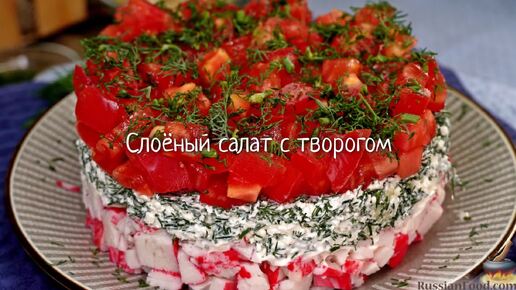 Эффектный и праздничный. Слоёный салат с творогом