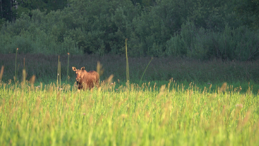 Лосиха пасётся на закате