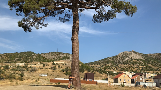 По Крыму пешком в предгорьях Весёлого. Старинная сосна. Пляж и набережная Весёлого и виды с гор