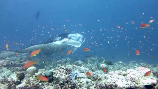 Дайвинг с мантами на Мальдивах.