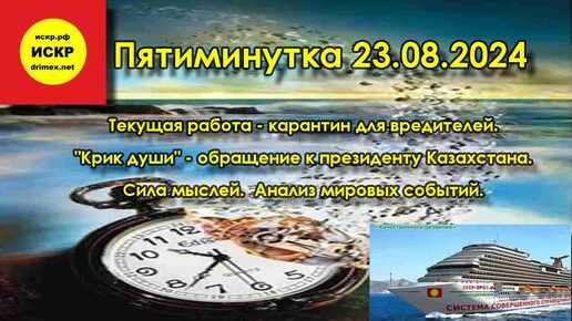 ИСКР. Пятиминутка 23.08.2024 Карантин для вредителей."Крик души" - обращение к президенту Казахстана. Сила мыслей. Анализ мировых событий.