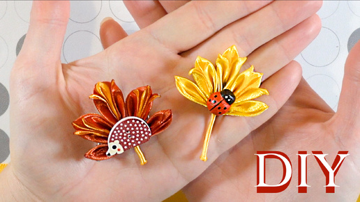 Осенний лист канзаши - цветы из атласных лент, заколки, бантики своими руками DIY