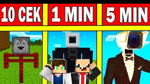 🎥НУБ И ПРО СТРОЯТ КАМЕРАМЕНА ЗА 10 СЕКУНД 1 МИНУТУ И 5 МИНУТ В МАЙНКРАФТ! ЯРИК КЕНТ НУБИК MINECRAFT