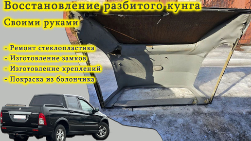 2 недели: Ремонт разбитого кунга на пикап SsangYong Actyon Sport: изготовление замка, ремонт стеклотканью, покраска балончиком