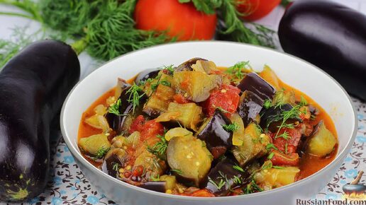 Идеальны и в горячем, и в холодном виде. Баклажаны, тушенные с помидорами и луком