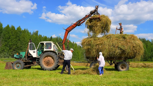 Лето в сельской местности Русского Севера. Заготовка сена в деревне вдали от цивилизации. Россия 2024