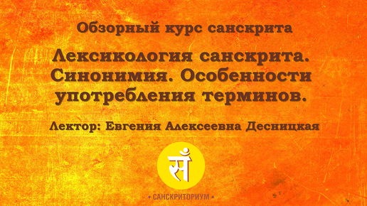 Обзорный курс санскрита. Лекция 9. Лексикология санскрита. Синонимия. Особенности употребления терминов. Читает Е. А. Десницкая