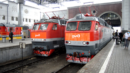 Электровозы ЧС7-005 и ЧС7-285 на станции Москва-Казанская