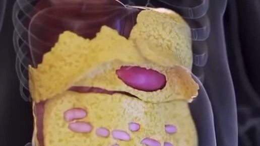 Вот так выглядит абдоминальное ожирение. Жир плотно обволакивает внутренние органы, живот становится «надутым» и твердым, как «барабан».