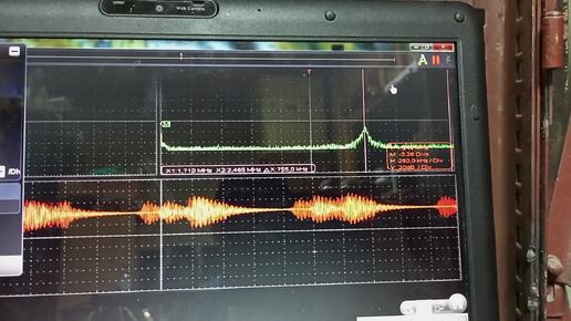 Спектр сигнала тесла качера 1.7 МГц с импульсной АМ 1-30 кГц. Боковые полосы