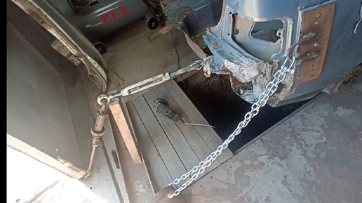 Двенашка битая в заднюю часть , рихтовка без стапиля в гараже . 1часть