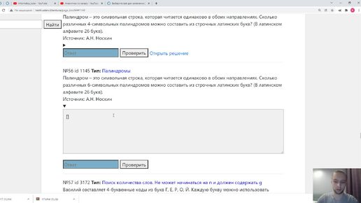 Как заполнить список алфавитом? Смотри. Как решать задачу с палиндромом? Смотри!