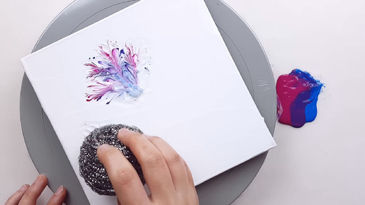 Красивые цветы. Техника рисования железным скруббером. Заливка жидким акрилом