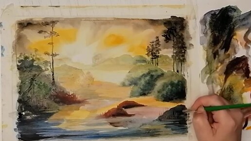Как нарисовать лучи солнца Пейзаж Акварель Рисуем с Любовью Draw with Love