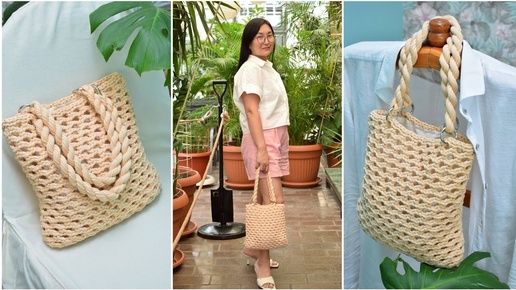 Как связать легкую и вместительную сумку сетку Видео МК + пошив подкладки + крученые ручки