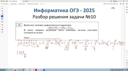 Информатика. ОГЭ - 2025. Задача 10. Системы счисления. Вычислите значение арифметического выражения. Числа в различных системах счисления