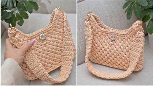 Вяжем простую модель сумки с узором Кукуруза из трикотажной пряжи